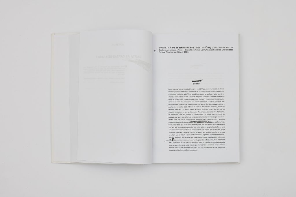 Meu nome é Jandir Jr. e sou doutorando no Programa de Pós-Graduação em Estudos Contemporâneos das Artes na Universidade Federal Fluminense. Minha trajetória na prática artística e na universidade tem na articulação entre o campo das artes visuais e a produção textual seu local de partida, com especial enfoque aos formatos de escrita que não se deram nos espaços expositivos, mas em livros, sites, correspondências e documentos.