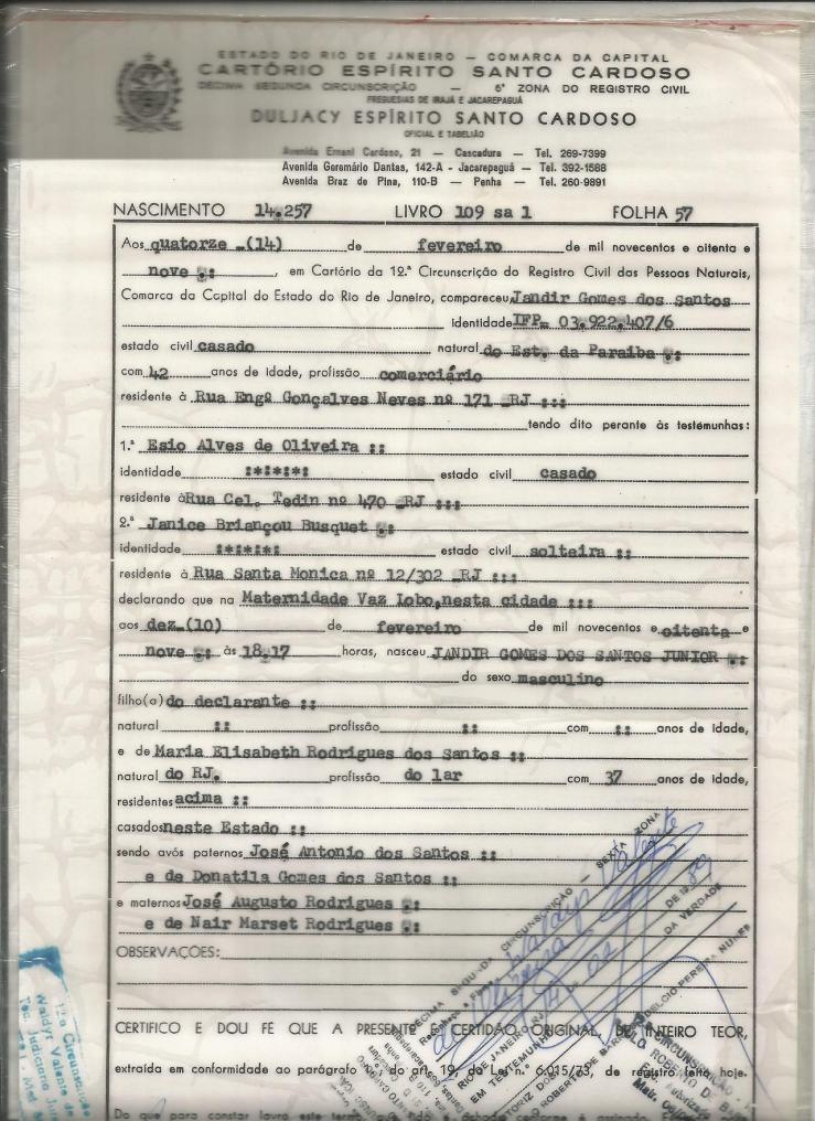 Publicado em 14.2.198925.12.2018 por Jandir Jr. Certidão de nascimento | 1989 | Datilografia, impressão e plastificação sobre papel | 21 x 31 cm. Curtir Carregando...
