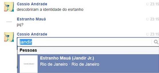 “Com quem eu falo?”, ele digitou. E após minha marcação ficou: Com quem eu falo — com Estranho Mauá. E ele me fez perceber a feliz coincidência (ou seria um ato falho?) ao comentar: