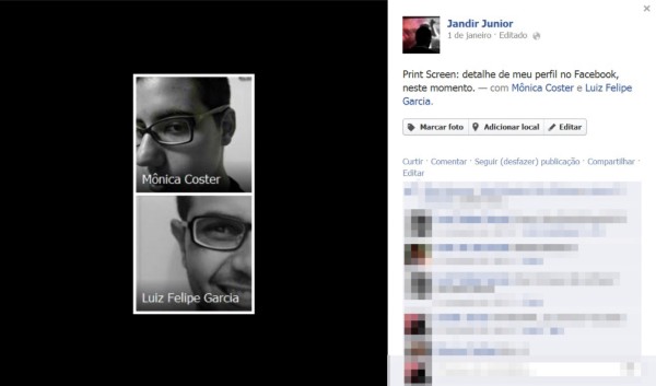 06/11/2014 — Antônio Amador mudou sua foto de perfil. Eu aparecia no canto dela de uma forma estranha, quase irreconhecível para alguém que não me visse há um tempo e, então, resolvi me marcar na foto. O que não imaginava é que me marcar na foto fosse dialogar com a legenda que ele atribuiu a ela: