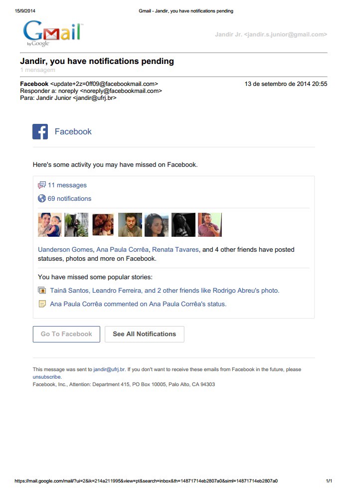 Fui observar como desativar o perfil por uma ideia de uma pessoa, Bia, que participa comigo num processo que culminará numa ação coletiva na Casa Daros. Ela teve a ideia de criar uma sala OFF — espaço onde os visitantes iriam desativar seu Facebook para então entrar na Casa. Obviamente enviei a imagem por e-mail ao grupo.