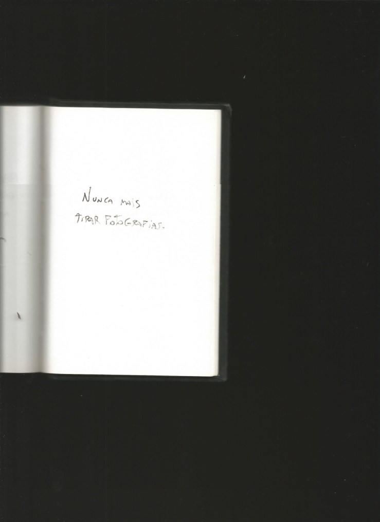 Do meu caderno de promessas12, onde descrevo em pequenos trechos como o acima desde planos que realizarei até planos que considero impossíveis de se realizar. Ainda não sei em qual dessas categorias o desta página escaneada está.
