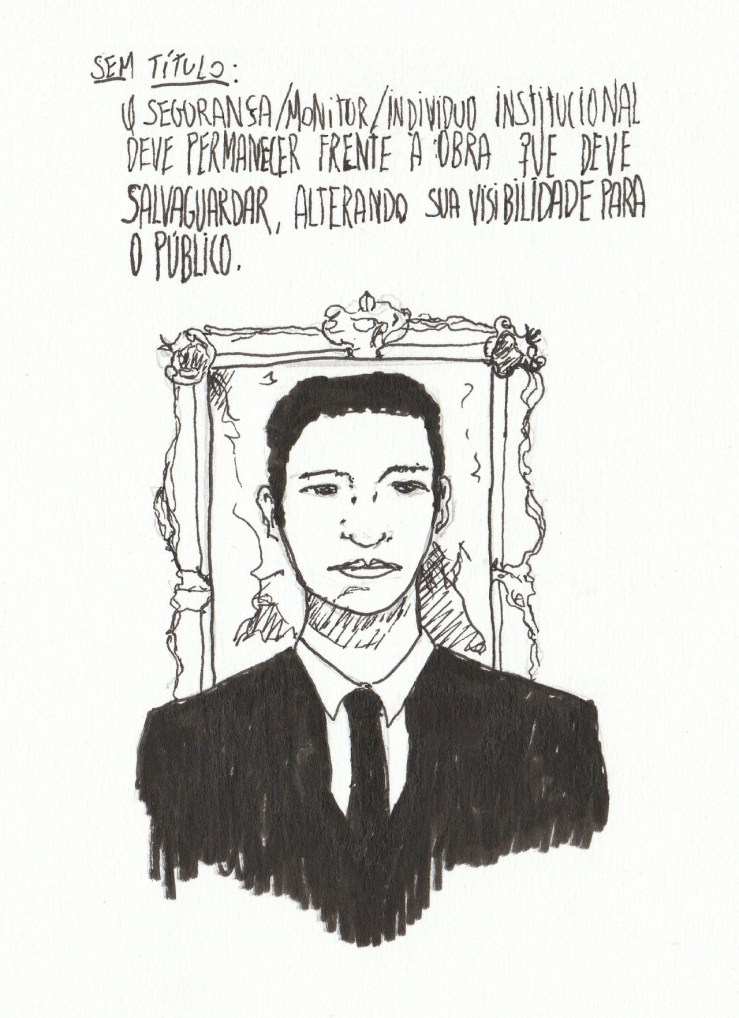 A obra em questão, no contexto do MNBA, é “Giuventú” de pintor Eliseu Visconti localizada na Galeria do Século XIX. Segundo Hugo Auler, A tela “Giuventú” de Elyseu Visconti equipara-se à “Gioconda” de Da Vinci pelo que tem de sensibilidade e de composição. A paisagem em profundidade, cuja perceptividade ainda é formada por um renque de árvores, de modo a dilargar o espaço pictorial, o colorido suave e etéreo a fatura de óleo, a figura da menina moça despida de sensualismo, a lembrar uma figura do prérafaelismo, onde são mais eloqüentes do que as palavras a linguagem da tensão do corpo e a penetração do olhar, misto de timidez, de aturdimento e de abstração, tornam esta obra de arte uma peça autentica de museu.Sendo assim, o movimento da performance é uma sobreposição de camadas de visualidades e tensões sobre as imagens (do quadro de Visconti e do corpo do segurança) e a relação do espaço do museu com um espaço de disputa de poder.