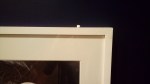 Hoje encontrei essa bolinha de papel em cima de uma fotografia e não repassei o problema à supervisão. Tive muita vontade de pôr algo encimando as molduras por aqui, enquanto monitorava as exposições, dia após dia, mas não fui eu quem pus a bolinha hoje. Como ato, apenas não avisei. Quis agir nesse ato já agido; ser de um silêncio que é seu mantenedor; ser coadjuvante nele.