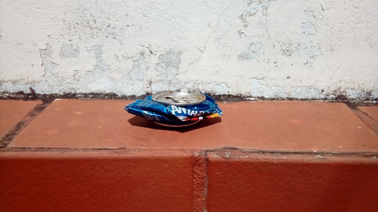 Passei a manhã amassando essa última leva. Usei uma pedra grande, como ele, e demorei a entender como fazer isso bem, mas posso dizer que peguei o jeito. De duas sacas, reduzi para uma cheia. E vendo essas tantas latas lembrei de meu título como bacharel em Artes Visuais com ênfase em Escultura, peguei uma das que amassei melhor, escolhi um lugar ao sol e fiz uma fotografia para recordar essa aula que não assisti na faculdade, mas em casa, ministrada por meu pai, ainda que fora de sua presença usual. Ou é artesania popular isso que passa de pai para filho – e nesse caso, um pai e um filho que tem o mesmo nome? A autoria não é importante se somos artesãos, sei disso. Talvez seja por isso que realmente não me vejo escultor: por ser um artesão, que aprende seus ofícios imemoriais com um só mestre, elo de um acorrentado contínuo a preservar aquilo tudo que fiz e que não sei bem, mas são bem mais do que meus feitos. Obrigado, pai.