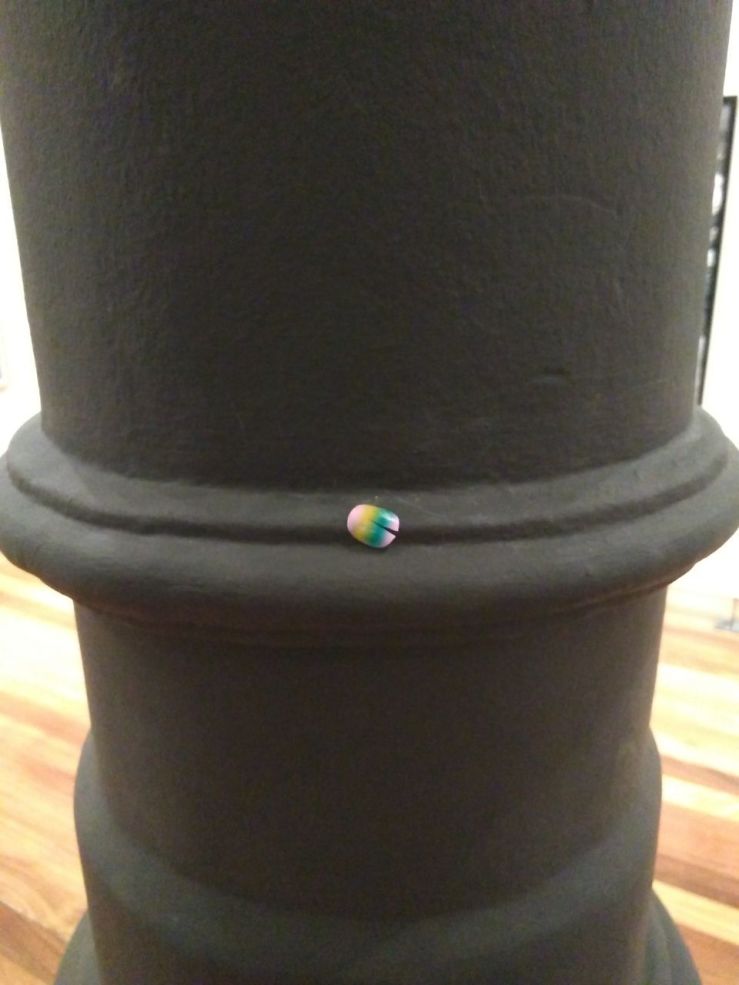 Foi uma das pessoas que trabalham comigo que me mandou a foto e disse que encontrou essa unha postiça no chão da galeria e a pôs apoiada numa de suas colunas, como fiz com uma pedrinha que encontrei no chão da galeria há um tempo atrás.