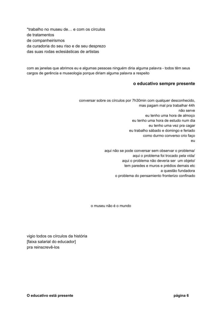 (De autoria de Max Willa Morais, estas páginas tem por nome O educador é um ordinário, e fazem parte de uma série chamada O educativo está presente. Max não chegou a publica-las; as conheci enquanto ela as desenvolvia, quando ainda era educadora no museu de arte do rio.)