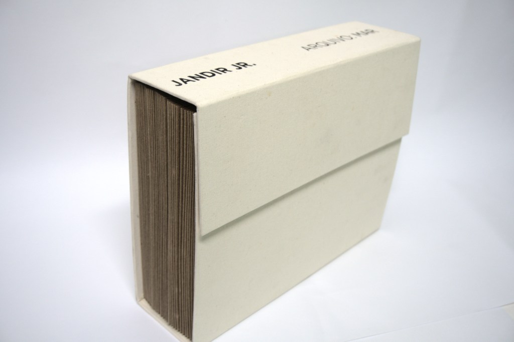 Fiz, primeiro, uma publicação em formato de pasta sanfonada, enorme, junto com um monte de gente incrível — e destaco a Mariana Paraizo, que pensou todo o design da caixa. Essa publicação, cujo nome é arquivo: mar, tem só dez tiragens, e a maioria dessas estão em cinco bibliotecas de instituições culturais aqui do Rio de Janeiro: Museu de Arte do Rio, Escola de Artes Visuais do Parque Lage, Biblioteca Nacional, Museu de Arte Moderna e Museu Histórico Nacional. A pasta carrega fichas com textos e imagens, minhas e de outras colegas, sobre o período que trabalhamos juntas, nesse regime de exploração monitor-educador; dando um tom classista pras relações tão angelicalizadas da educação em museus (blergh!, eu não educo por amor, gente!). Pronto: algo das nossas memórias estava inoculado nas instituições. Inclusive no MAR, onde trabalhamos.