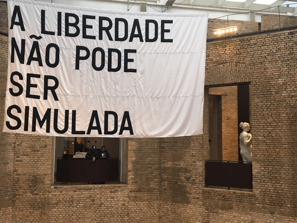 É de amplo conhecimento, mas vou retomar: na edição atual da Bienal de São Paulo, uma carta é divulgada publicamente pela revista seLecT_ceLesTe, assinada por um coletivo anônimo de trabalhadoras. Das funções de orientação de público e educação, elas tecem severas críticas às condições de trabalho; o valor do Vale Refeição, a falta de acessibilidades, as escalas de trabalho extenuantes, descumprimento do decreto do nome social nº: 8727, esperas de até três horas para ir ao banheiro, intimidações… No mesmo dia, é divulgada uma nota de resposta da Fundação Bienal de São Paulo, publicada pela mesma revista. A Bienal então pontua todas as medidas que vem tomando institucionalmente, rebatendo as críticas às suas condições de acessibilidade, remuneração e medidas de equidade de gênero. E pontua algo que, do início, retorna no fim da nota. Para exemplificar, colo abaixo as últimas palavras que disseram: