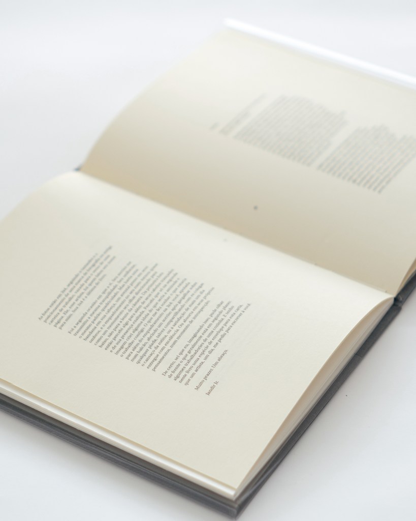 Não cheguei até esse Instagram à toa. Um artista conversou comigo. Trabalhador das cozinhas, um antigo funcionário daí, fotografou os rostos de colegas de trabalho e, com as fotografias feitas, compôs este livro, entremeando-as à algumas páginas que registram a carteira de trabalho de seu avô. Retratos quase todos em preto e branco, enquanto a carteira colorida, em suas cores sépia, com o amarelado da passagem do tempo, só me fez pensar que o trabalho de base é atemporal, envolve complexidades transatlânticas, sindicalismos e quilombos, hoje, amanhã, depois. As fotos estão em 3×4, seguindo o tamanho e o posicionamento de uma marca de fotografia na antiga carteira de trabalho, vazada para o verso de uma página. Ele, esse artista, foi quem falou seu nome para mim. Sua 3×4 é a última do livro.